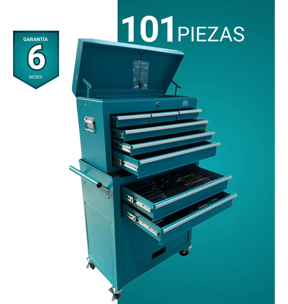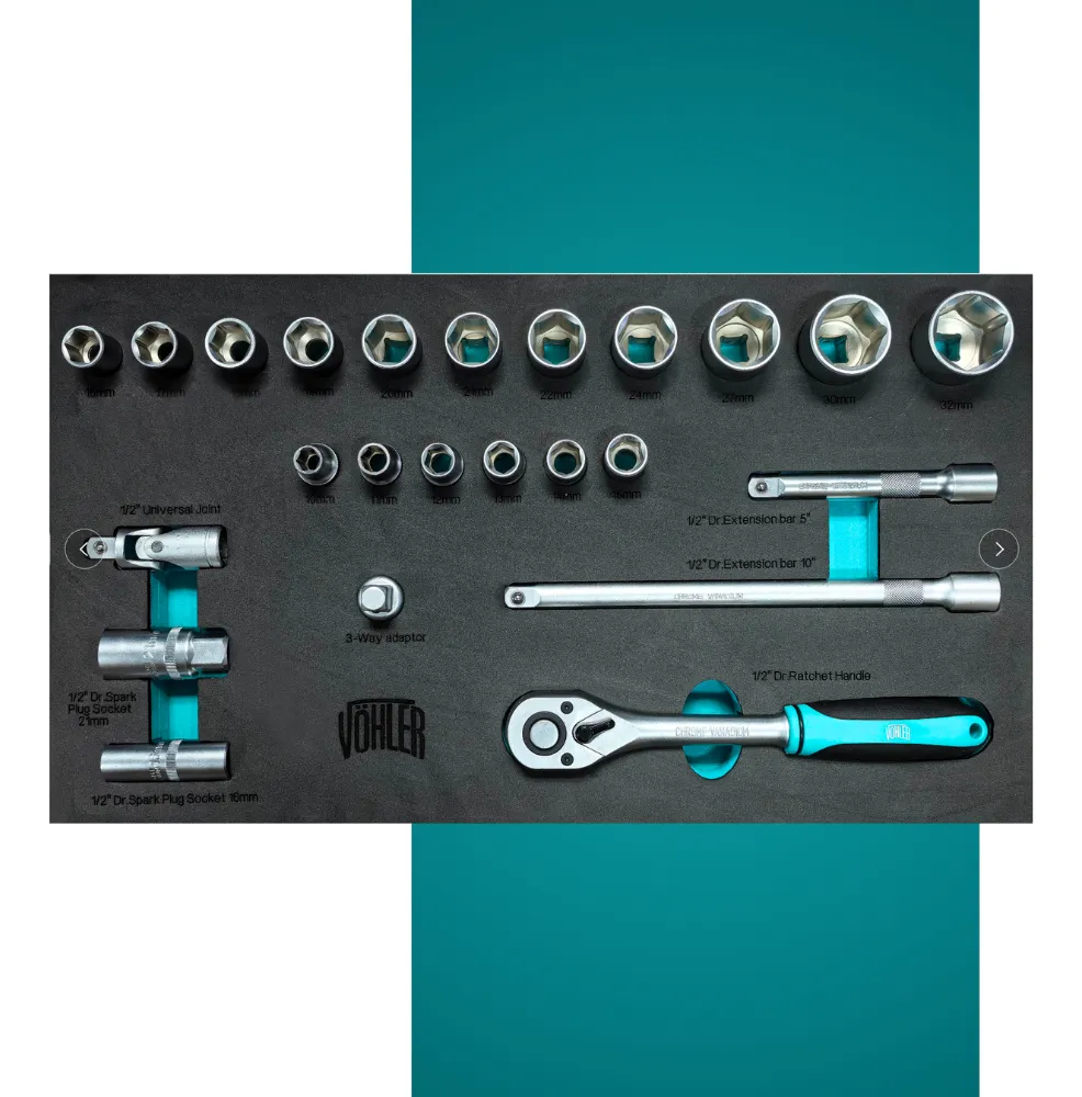 Gabinete Metálico de Herramientas VÖHLER con 101 Piezas Profesionales – 1/2″ y 1/4″