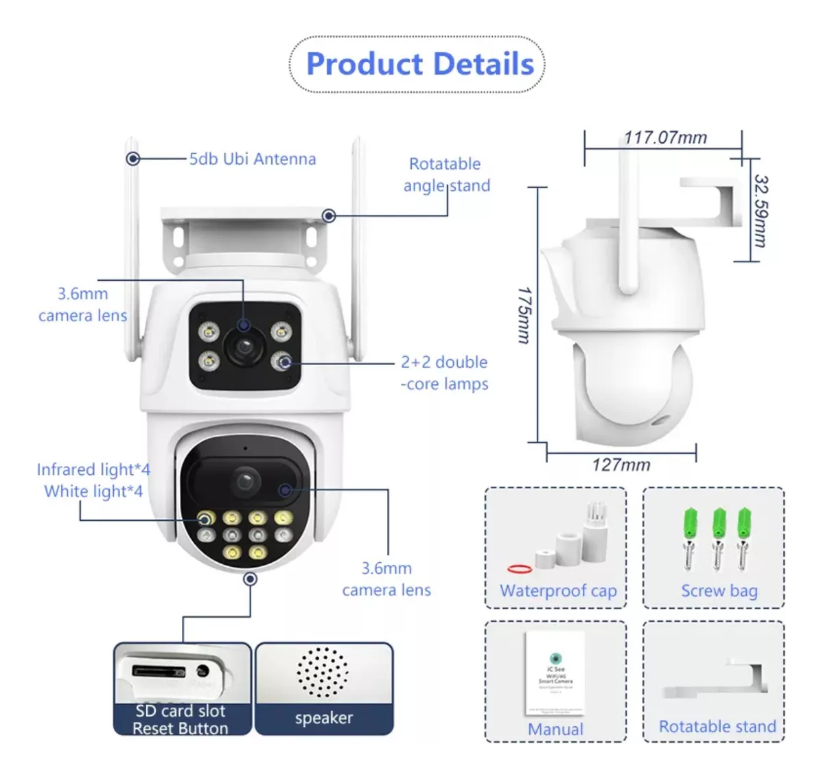 Mantené tu hogar seguro en todo momento con la Cámara Domo de Seguridad Exterior Doble Lente GEOTEK P9 de 6MP. Equipada con detección de movimiento y visión nocturna, esta cámara te brinda una vigilancia confiable las 24 horas del día. Resistente a la intemperie y fácil de instalar.