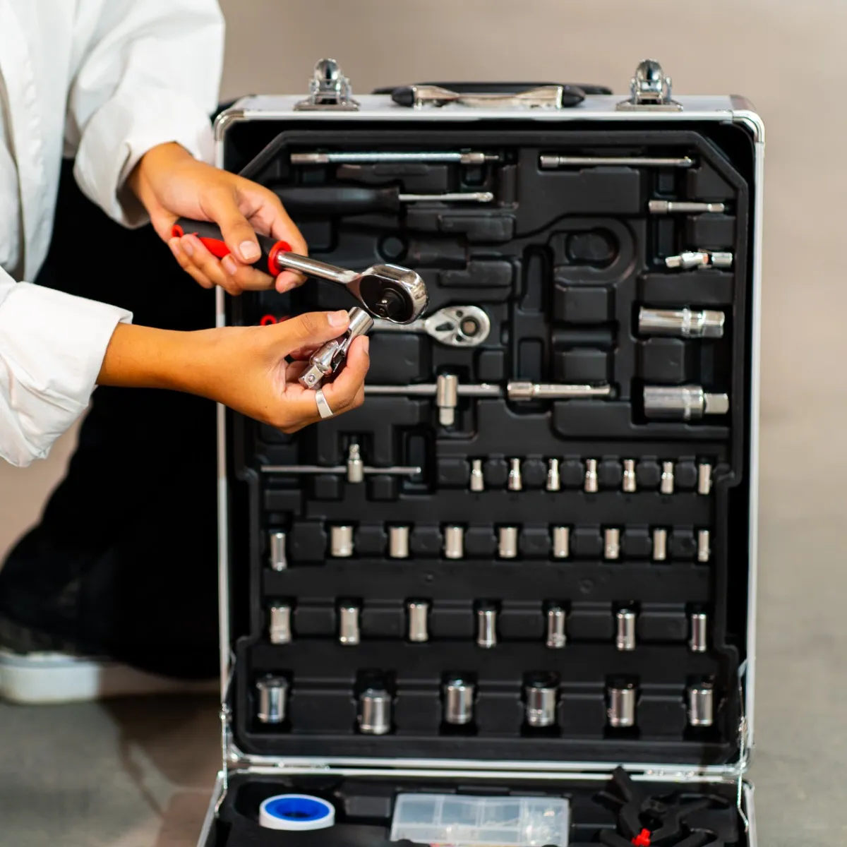 Set Kit De Herramientas Salkor Shh1300 Maletín De Aluminio 130 Pzas Juego Llaves Tubos
