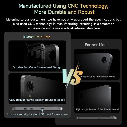 Disfruta de un rendimiento perfecto con la tableta iPlay 60 Mini Pro, con la última versión de Android 14 y ALLDOCUBE OS 3.0. Disfruta de un inicio de aplicaciones más rápido y de una multitarea más fluida con funciones innovadoras como cambiar de escritorio con un dedo, dividir la pantalla con dos dedos, capturar la pantalla con tres dedos y las prácticas ventanas flotantes. Gracias a la certificación GMS, puedes acceder a una amplia selección de aplicaciones de Google Play Store y mantenerte productivo y entretenido con una interfaz refinada e intuitiva. Sumérgete en una calidad de sonido superior con los altavoces duales del iPlay 60 Mini Pro, que ofrecen un sonido estéreo nítido. El versátil puerto tipo C admite tanto la carga como el uso de auriculares, lo que mejora la comodidad. Disfruta de tus películas y juegos favoritos con una claridad asombrosa en la pantalla FHD+ In-Cell de 1920 x 1200. Con la certificación Widevine L1, puedes reproducir contenido HD en Amazon Prime Video, Disney+, Hulu, Netflix y más con una resolución nítida de 1080P. Protege tu dispositivo sin esfuerzo con la función avanzada de reconocimiento facial, que proporciona un acceso rápido y seguro a la vez que protege tu privacidad. La robusta batería de 6050 mAh garantiza un uso duradero, complementada con una carga rápida PD de 18 W para un tiempo de inactividad mínimo. Las elegantes dimensiones (202,7 × 126 × 7,9 mm) y el diseño liviano (310 gramos) de la tableta la convierten en la compañera portátil perfecta para el entretenimiento y la productividad mientras viaja. Mejore sus experiencias de juego y navegación con el preciso giroscopio de 6 ejes y el motor responsivo, que ofrecen un control direccional preciso y una respuesta táctil. Como dispositivo confiable de navegación para automóviles, proporciona una guía precisa de la ruta. El sensor de luz integrado ajusta el brillo de la pantalla según las condiciones de iluminación ambiental, mientras que el sensor de gravedad garantiza la rotación automática de la pantalla. El proceso de fabricación CNC confiere a la tableta un aspecto elegante y moderno, con un puerto USB ubicado en el centro para mayor comodidad. Mantente conectado en cualquier lugar gracias a la compatibilidad dual con 4G LTE y VoLTE, que te permite hacer llamadas y acceder a datos en áreas sin Wi-Fi. El iPlay 60 Mini Pro es compatible con Wi-Fi de 2,4 GHz y 5 GHz, y es compatible con los sistemas satelitales GPS, Beidou, Galileo y Glonass para una navegación fiable. Con una impresionante memoria RAM de 16 GB (8 GB + 8 GB de RAM virtual) y 128 GB de almacenamiento interno, ampliable hasta 512 GB mediante una tarjeta SD, dispondrá de amplio espacio para todas sus aplicaciones, fotos y vídeos, lo que garantiza que nunca se quedará sin espacio de almacenamiento. -【Android 14 avanzado y ALLDOCUBE OS 3.0】La tableta iPlay 60 Mini Pro funciona con Android 14 y ALLDOCUBE OS 3.0, lo que ofrece un rendimiento fluido y un inicio rápido de las aplicaciones. Con la certificación GMS, puedes descargar varias aplicaciones de Google Play Store. Disfruta de la multitarea con funciones como cambiar de escritorio con un dedo, dividir la pantalla con dos dedos, hacer capturas de pantalla con tres dedos y prácticas ventanas flotantes. Disfrute de una interfaz de usuario refinada e intuitiva diseñada para el entretenimiento. -【Reconocimiento facial y batería de 6050 mAh】Desbloquee su tableta de forma rápida y segura con la función de reconocimiento facial, que mejora la privacidad del usuario y evita el acceso no autorizado. La batería mejorada de 6050 mAh garantiza un uso duradero. Soporta una carga rápida PD de 18 W, mide 202,7 × 126 × 7,9 mm y pesa unos 310 gramos, lo que facilita su transporte y disfrute en cualquier lugar. -【Altavoces duales y Widevine L1】La tableta iPlay 60 Mini Pro ahora cuenta con dos altavoces, que ofrecen una experiencia de sonido estéreo más inmersiva. El puerto tipo C integra la función de carga y auriculares para mayor